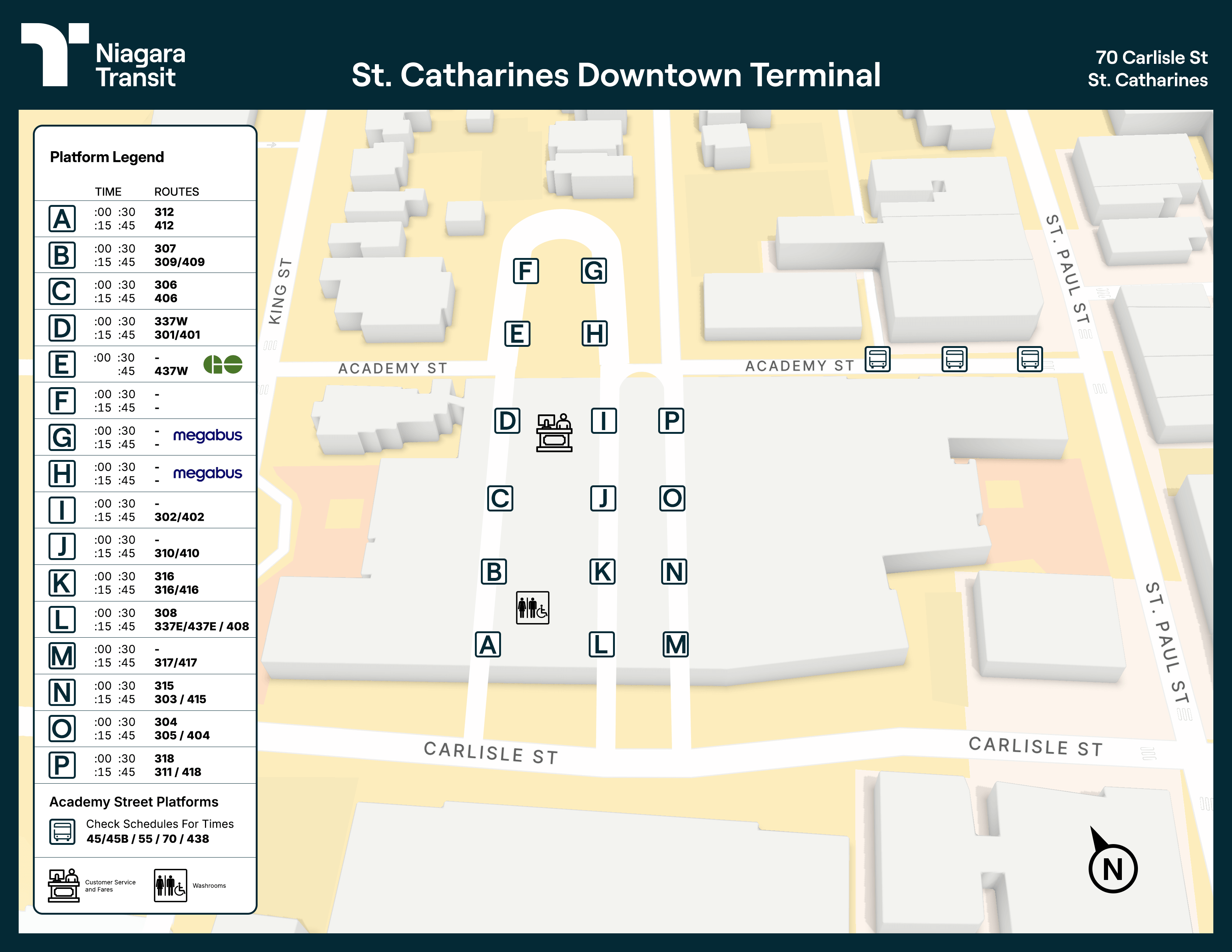 Academy Street Platforms: 45 / 45B / 55 / 70 / 438