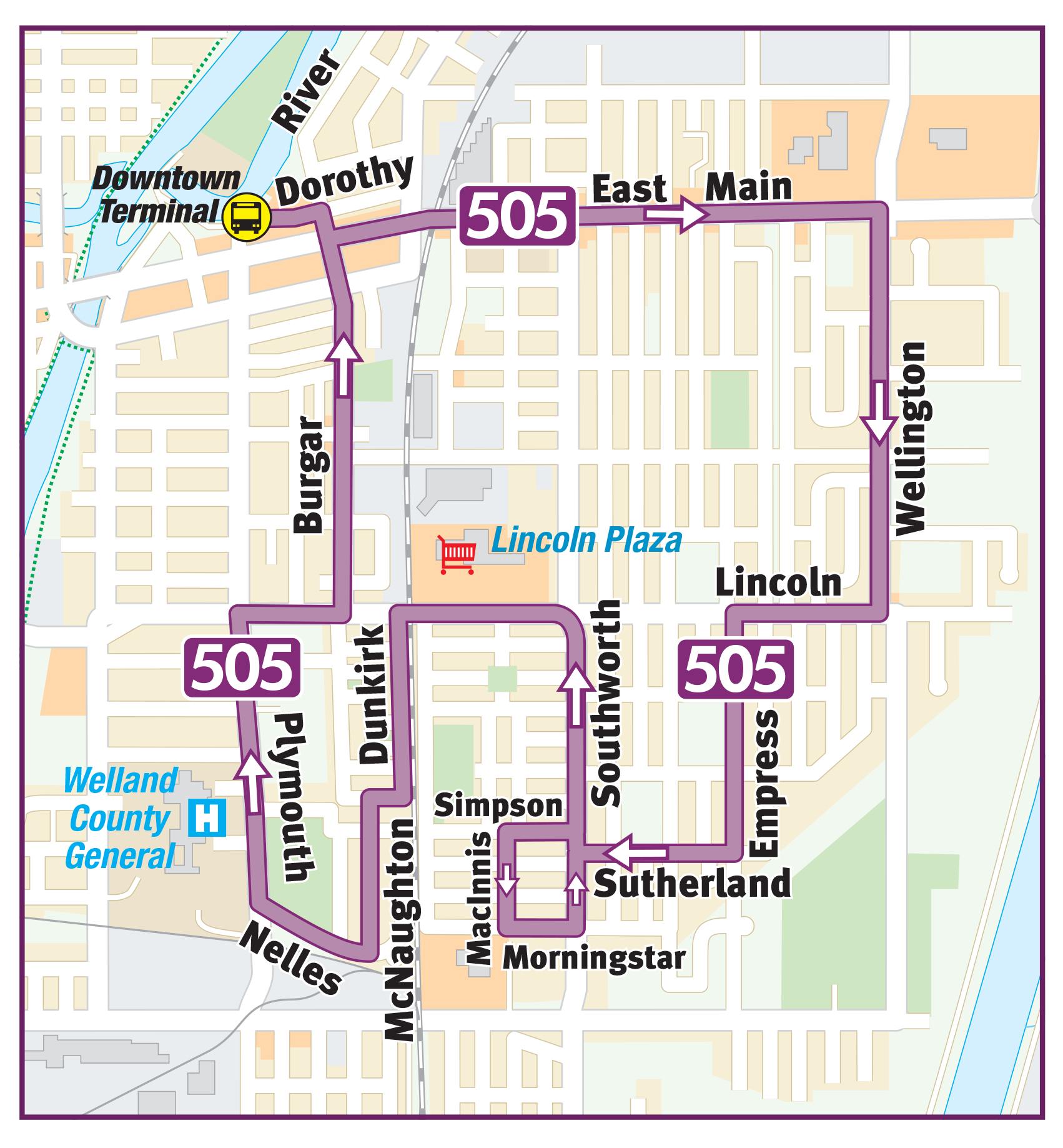 | DEPART WELLAND BUS TERMINAL | 10:30 | 11:30 | 12:30 | 1:30 | 2:30 | 3:30 | 4:30 | 5:30 |